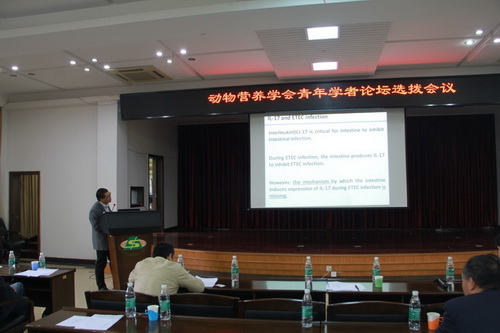 10月16日至17日,为贯彻落实首届中国畜牧兽医学会动物营养学分会青年学者论坛的优秀青年人才推荐工作,在中国工程院院士、中国科学院亚热带农业生态所研究员、动物营养学分会常务理事印遇龙在该所组织召开了首届“动物营养学会青年学者论坛”推荐选拔会议。此次会议共有6位青年学者参加选拔,会议邀请了华中农业大学彭健教授、湖南省农业科学院院长邹学校、湖南农业大学贺建华教授、湖南农业大学刘仲华教授、湖南师范大学刘少军教授、中国科学院青岛生物能源与过程研究所付春祥研究员作为评审专家。