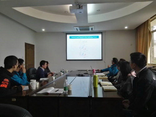 会上方运霆详细介绍了稳定同位素生态学组近几年来的工作重心及主要的工作成果,介绍了当前国内外关于氮稳定性同位素研究方面的最新进展。随后李德军介绍了课题组的工作进展、相关学术成果以及未来的工作设想,方运霆进行了细致点评并给予了许多宝贵的建议。