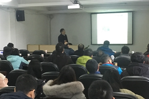环江站全体科研人员、在读研究生和部分高校的联合培养研究生60余人参加交流会。站长王克林研究员以“从生态系统观测研究到可持续发展生态--西南喀斯特区域研究的新使命”为题,分析了“美丽中国建设、山水林田湖草统筹治理”等国家科技需求、国际宏观生态学发展的新趋势,特别是地球关键带理论为喀斯特生态学多过程多尺度融合提供了整合理论与方法,提出了“喀斯特景观格局-水土过程—生态服务”的研究内容与区域网络化平台建设构想。副站长陈洪松研究员介绍了“喀斯特关键带水文过程及植物水分利用”的研究进展。岳跃民研究员、赵杰研究员、李德军研究员、徐宪立研究员等12名青年科研人员分别就喀斯特植被恢复过程中的区域生态效应、土壤生物与养分变化机理、生态水文的过程响应、植被格局响应与植物个体适应以及内涝频发峰丛洼地种植结构优化等研究方向展开了一天的交流与讨论。