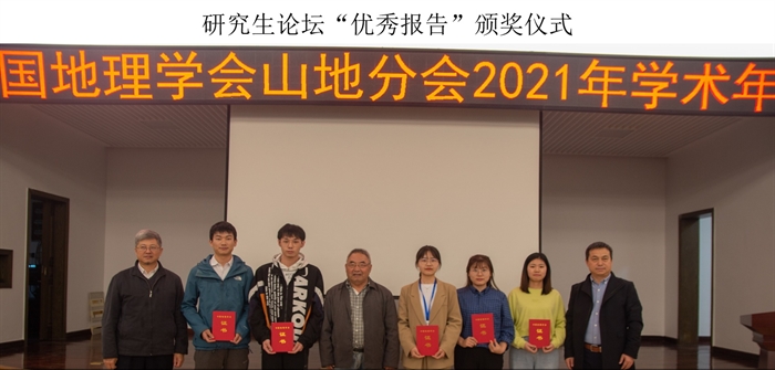在24日山地分会举办的研究生论坛上,来自于北京大学、东北师范大学、陕西师范大学、福建师范大学、云南师范大学、重庆师范大学和中科院成都山地所、亚热带生态所以及广州地理所等十几所大学与科研院所的二十多位研究生做了学术交流。现场专家对报告进行了现场点评,并评选出5名优秀研究生学术报告。在会议闭幕式上,山地分会主任委员邓伟教授宣读了研究生论坛优秀报告名单,知名科学家张信宝为获优研究生颁发证书。