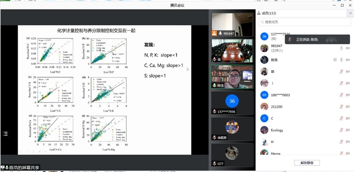 会上,王克林研究员总结了环江站2021年在科研工作、项目申请、成果产出、平台建设、人才培养与成长等方面的情况,在肯定贡献与成绩的同时,也指出当前研究和管理方面存在的问题,并作了题为“社会-生态视角下的喀斯特人地系统耦合研究”的报告。岳跃民研究员等二十余位研究人员分别就喀斯特区域人类活动下生态效应变化、喀斯特森林生态系统服务、养分循环与土壤生态过程、喀斯特生态水文综合效应等研究方向开展学术交流与讨论,其中曾在环江站工作过的现中山大学刘梅先副教授、陈浩副教授也分别做了线上学术交流报告。在良好的会议氛围中,参会人员充分交流了研究进展,收获了专家与科研同行的建议,取得了较好效果。