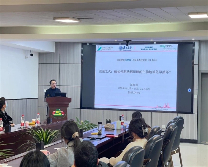 汪家家作了题为“星星之火:硫如何驱动稻田砷的生物地球化学循环”的学术报告,报告中介绍了砷和硫相伴相生,它们的地球化学过程往往耦合在一起。半个多世纪以来关于水稻孔隙水中砷的化学形态研究主要围绕在无机砷酸、无极亚砷酸和甲基砷化合物等,而水稻田砷-硫可通行化学物的形成一直是悬而未知的。报告中,聚焦中国和欧洲主要水稻产区,通过实验室-野外、微观机制-大尺度研究相结合的方法,揭示硫代砷在水稻田中形成、分布以及关键影响因素。