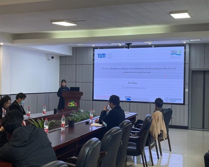 王贺作了题为“异源性病原体和自生性微生物在岸滤过程中的归趋”的学术报告。报告介绍了水体微生物组、特别是病原菌和病毒等在岸滤过程中的动态及归趋,以及在极端气候日益频繁的当下,岸滤体系在减弱外来病原体、尤其是在致病病毒方面受到的挑战。