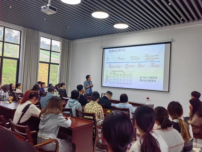桃源站朱宝利研究员向到访师生详细介绍了桃源站发展历史、组成结构、试验场的分布及总体布局、长期定位试验及相关科学发现,希望与华中农业大学资源与环境学院深入开展科研和教学等领域的合作,并鼓励学生报考研究所的研究生。