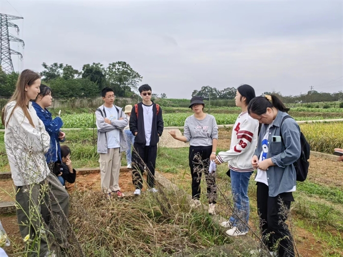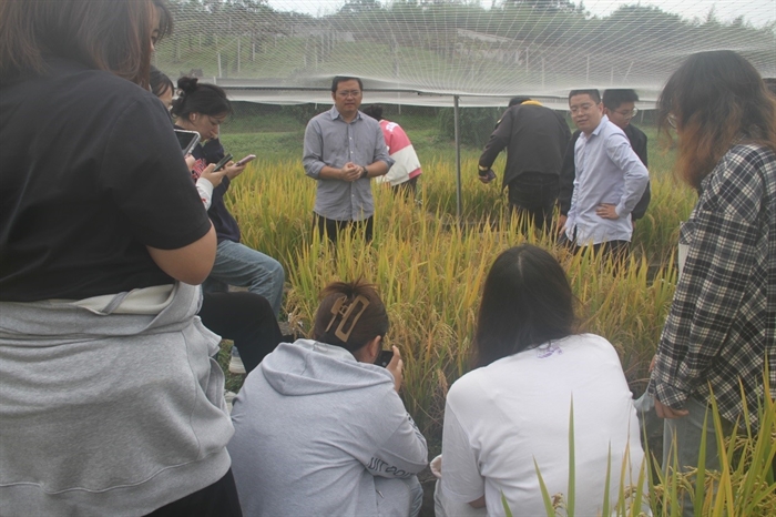 刘毅向学生介绍南方典型水稻土壤微生物群落演替田间试验
