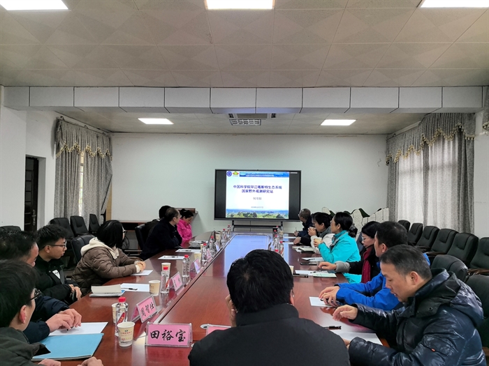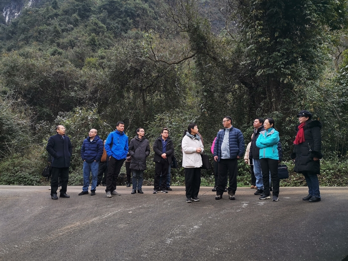 2月27日,为落实全国生态质量监督监测工作方案精神,广西壮族自治区生态环境监测中心主任陈蓓、河池市生态环境监测中心主任林革及下属各科室负责人等一行到环江喀斯特生态系统观测研究站调研。环江站副站长张伟研究员,环江毛南族自治县县委常委、科技副县长何寻阳研究员、环江县相关职能部门工作人员和环江站职工等陪同参加。