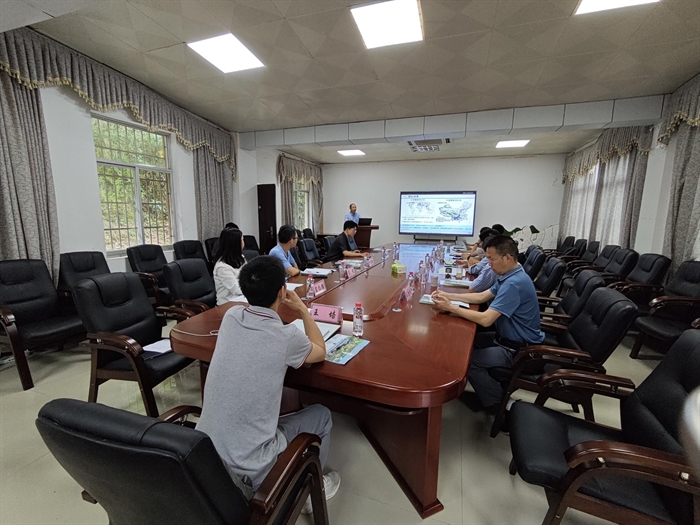 何寻阳陪同专家组参观了关键带实验平台、植被-土壤-表层岩溶带三维水土过程试验场地、站区坡地水土流失监测小区、冠层氮沉降模拟观测实验场和喀斯特特色高值植物引种园等,介绍了各个样地试验设计、研究成果以及野外观测设备的情况。在座谈会上,何寻阳介绍了环江站的建站历史与研究目标、人才队伍与承担的主要科研项目、仪器设备、重要科研成果等情况,以及环江站在石漠化治理与生态恢复、土壤侵蚀防治、退耕还林还草等方面所取得的经济、社会与生态效益。他还从喀斯特地区水土漏失阻控技术、峰丛洼地生态产业构建、生态功能和经济效益协同提升技术,及应用示范等方面介绍了环江站的研发技术成果、应用推广及产生的社会影响。随后,邓海波研究助理、肖峻副研究员、王高鸿研究员和王培副研究员分别做“环江县农文旅养融合高质量发展规划”“村域产业设计与乡村振兴示范村创建”“土壤生物结皮及其在石漠化土壤治理上的应用”和“环江乡村振兴中关注的几个事项”等报告,从多个角度详细介绍了环江站在定点帮扶工作中所取得的成效。专家组对报告内容作点评,在规划方案优化、技术研发可行性、产业落地与示范区建设关注的问题等方面提出改进建议,并针对中国科学院乡村振兴项目后续执行计划进行了讨论。