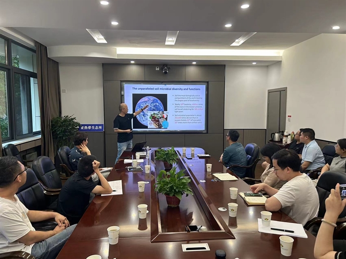 6月24日,应中国科学院亚热带农业生态研究所环江喀斯特站张伟研究员邀请,法国农业食品环境研究院(INRAE)Luiz Alberto Domeignoz Horta研究员和中国农业大学王钢教授到研究所开展学术交流。