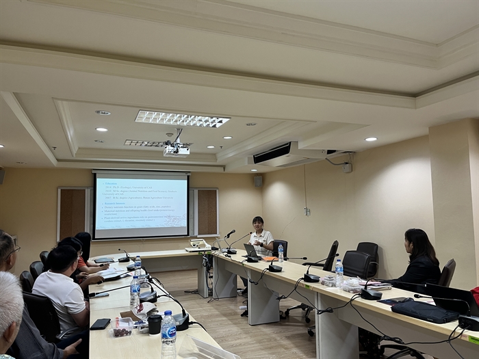 访问期间,颜琼娴一行先后考察了SUT农场、Dan Khun Thot农业合作股份有限公司和Phimai奶业合作股份有限公司,深入了解泰国不同季节木薯在当地山羊和奶牛饲粮中的应用现状,同时评估了该区域畜产品满足零饥饿目标实现的影响因素和调控途径。调研发现,泰国在制备木薯青贮饲料时存在品质一般、牛羊体内转化效率低等问题,无法保证旱季牛羊快速生长和产奶的营养需求。而亚热带生态所农牧复合草食家畜健康高效养殖与生态服务团队研发的木薯青贮营养强化和抗营养因子靶向降解技术可有效提升当地现有木薯青贮饲料加工品质和利用率不佳的难题。谭支良剖析了当地蛋白源饲料替代技术储备的重要性和紧迫性,强调了畜牧业科技进步对营养性零饥饿的重要贡献,建议进一步加强科技研发力度,以抵抗进口玉米、豆粕价格上涨导致的牛羊营养性饥饿风险。颜琼娴一行还受邀访问ANSO成员单位亚洲理工学院(AIT),参观了食品工程与生物加工科技实验室,与Anil Kumar教授就木薯精准发酵、蛋白替代和前沿加工技术进行了深入交流。