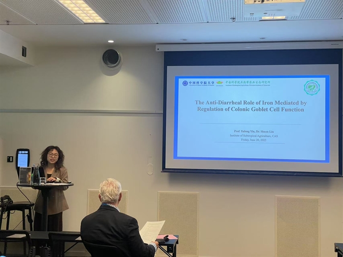 中国科学院亚热带农业生态研究所印遇龙院士团队成员、助理研究员刘栓博士参加会议,并作题为“The Anti-Diarrheal Role of Iron Mediated by Regulation of Colonic Goblet Cell Function”的口头报告,分享了铁通过调控肠道杯状细胞功能以改善黏膜屏障、缓解腹泻的最新研究成果。团队基于仔猪、小鼠及类器官等多种模型,系统揭示了铁营养,特别是氨基酸螯合铁调控肠道黏膜屏障完整性的分子机制。