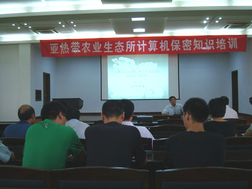 为了强化广大干部职工尤其是涉密人员的保密意识,增强安全防范能力,提高保密工作水平,8月6日,中科院亚热带农业生态研究所举办了计算机网络安全保密培训,亚热带生态所所长王克林、党委书记李文祥,副所长王新洪以及在所的全体科研、管理人员参加了培训。