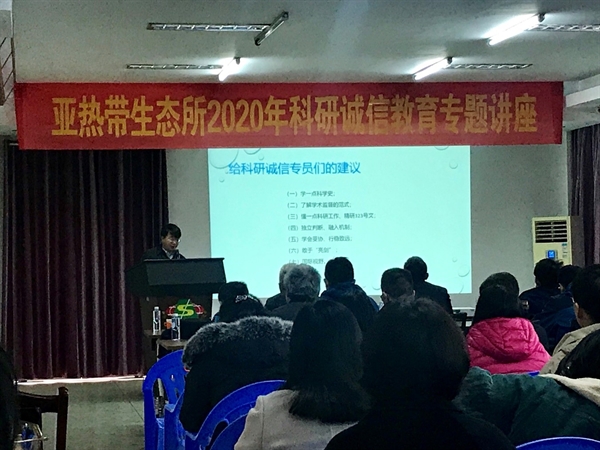 为深入贯彻落实《关于进一步弘扬科学家精神加强作风和学风的意见》和《中共中国科学院党组贯彻落实〈关于进一步加强科研诚信的若干意见〉的实施办法(试行)》文件精神,加快推进科研诚信体系建设,11月24日,中国科学院亚热带农业生态研究所组织开展科研诚信教育专题讲座活动。