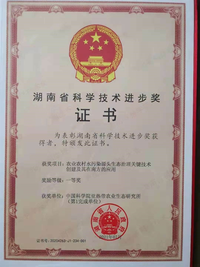 7月21日,湖南省科技创新奖励大会在长沙召开,大会对获得2020年度湖南省科学技术的个人和团队予以表彰奖励。中国科学院亚热带农业生态研究所吴金水团队完成的成果“农业农村水污染源头生态治理关键技术创建及其在南方的应用”获得2020年度湖南省科技进步一等奖。