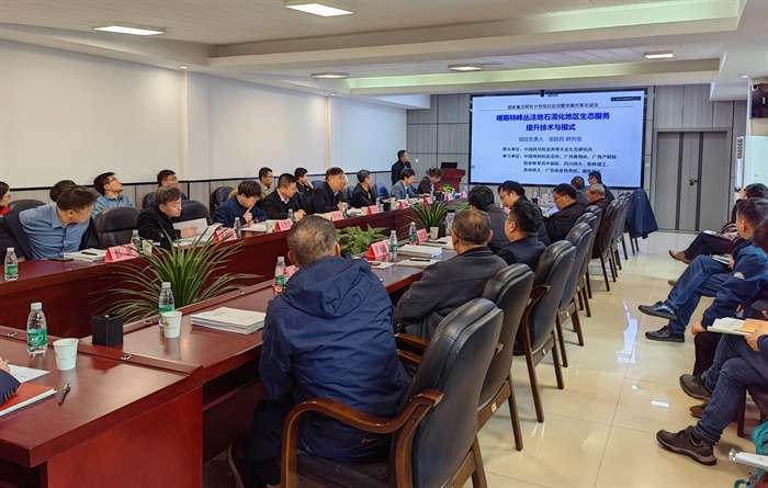 岳跃民从项目背景与考核指标、研究内容与实施方案、预期成果与创新点、研发团队及工作基础、组织管理及经费预算等方面对项目实施方案进行了介绍。岳跃民、中国地质调查局岩溶地质研究所罗为群研究员、广西壮族自治区中国科学院广西植物研究所韦霄研究员、亚热带生态所李德军研究员、广西壮族自治区产业技术研究院张伟研究员五位课题负责人分别从课题研究目标、研究内容、研究方案等方面对课题实施方案进行了介绍。