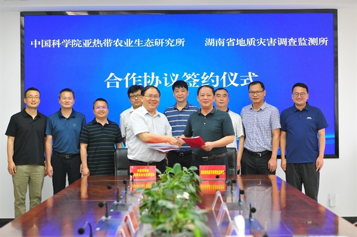 6月2日,中国科学院亚热带农业生态研究所和湖南省地质灾害调查监测所(简称“地灾所”)在长沙举行签约合作协议。亚热带生态所党委书记王克林、科技管理与规划处处长刘守龙、喀斯特区域农业生态研究中心副主任岳跃民,地灾所所长刘拥军、党委书记皇甫悦星、副所长董国军等出席签约仪式。