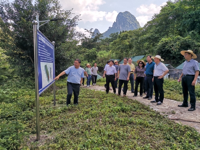 王克林研究员(右一)介绍石漠化治理示范区(何寻阳摄)