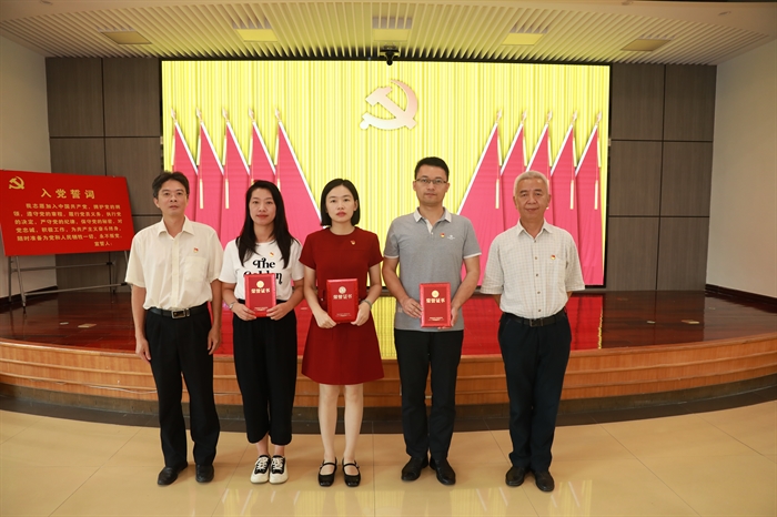 大会在庄严的国歌声中拉开序幕,在范德权带领下,新党员面对鲜红的党旗,举起右拳,庄严宣誓,在场党员重温入党誓词。