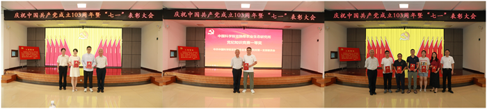 随后大会对2022年度至2024年度优秀共产党员、优秀党务工作者、先进基层党组织,以及党纪知识竞赛一、二、三等奖获得者进行了表彰,党委书记谭支良、纪委书记范德权、副所长谢永宏分别为获奖集体和个人颁发了荣誉证书。