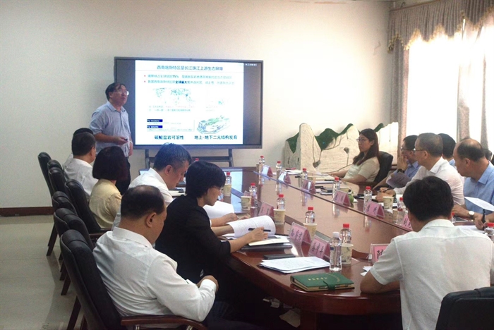 在随后的座谈会上,环江站站长王克林介绍了环江站建站历史、台站定位与研究目标、人才队伍、承担的主要科研项目、机理研究和技术研发成果等内容,并详细汇报了环江站在石漠化治理、关键带水土资源保蓄与高效利用、植被高质量恢复与生物多样性保育、生态高值产业培育与示范等方面取得的主要成果。龙腾充分肯定了环江站在喀斯特地区生态恢复基础理论研究与技术研发示范方面取得的成绩。他指出,广西区位优势突出,科技创新场景广阔,要继续发挥国家野外台站的平台优势和科技支撑作用,打造生态产品品牌,深化部地院地合作,推进广西生态文明建设和社会发展,为高水平科技自立自强和科技强国建设做出国家野外台站贡献。