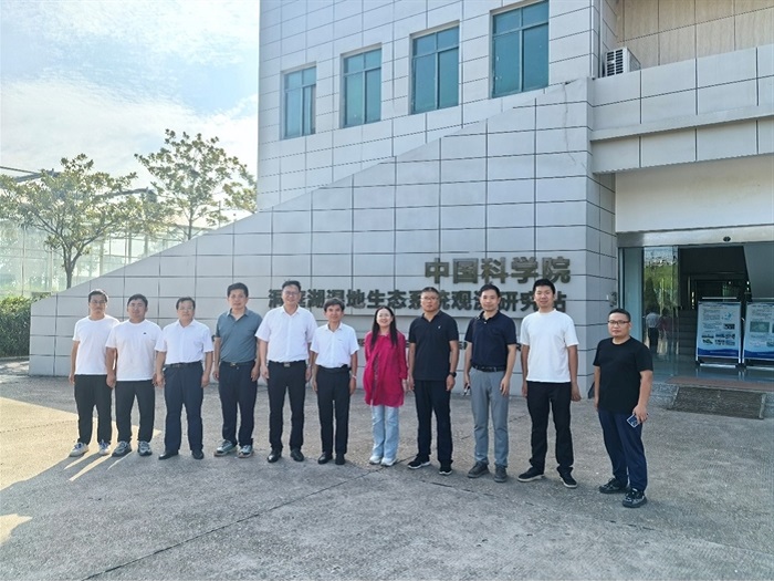 6月5日,中国林业科学院亚热带林业实验中心党委书记、主任张殿松,党委委员、森林生态与环境保护研究室主任厉月桥,江西省林业科学院副院长黄晓凤,中国地质调查局长沙自然资源综合调查中心主任徐宏根、副主任王步清等到中国科学院亚热带农业生态研究所洞庭湖湿地生态系统观测研究站考察交流。