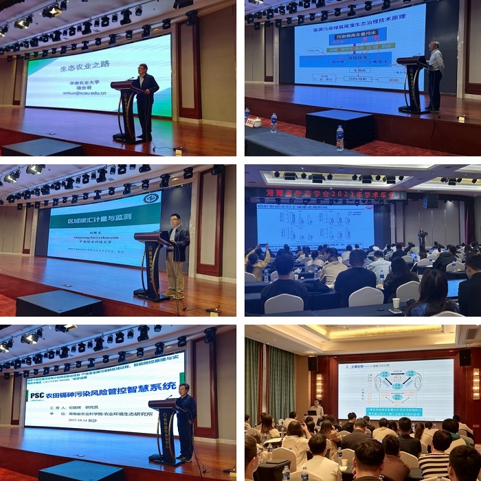 华南农业大学原校长、中国生态学会原副理事长骆世明教授,中国科学院亚热带农业生态研究所原所长吴金水研究员,中南林业科技大学刘曙光教授,湖南农业大学环境与生态学院副院长王华教授,湖南农业环境生态研究所所长纪雄辉研究员分别作了题为“生态农业之路”“生态环境治理促进乡村振兴的若干案例剖析”“区域碳汇计量与监测”“稻虾综合种养的可持续性”“农田镉砷污染风险管控智慧系统”的特邀报告。