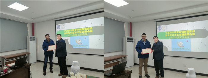 王克林对王敏研究员和李凤娜研究员同时入选青促会优秀会员表示热烈祝贺,同时祝贺杜虎和邓正苗入选青促会会员以及所青促会小组顺利完成换届。他充分肯定了青促会在研究所发展中的重要作用,并向青促会小组成员一年来对研究所发展所作的支撑和谏言给予了肯定。同时,他也指出,青促会汇聚了研究所青年研究骨干的核心力量,期待青促会会员在科研工作中发挥更大的作用,积极争取国家级重大科研攻关项目和高水平人才类项目,鼓励青促会成员不忘初心砥砺奋进,努力拼搏再创辉煌。最后,他为原两任组长王敏、聂云鹏颁发了荣誉证书,感谢他们为青促会作出的贡献。