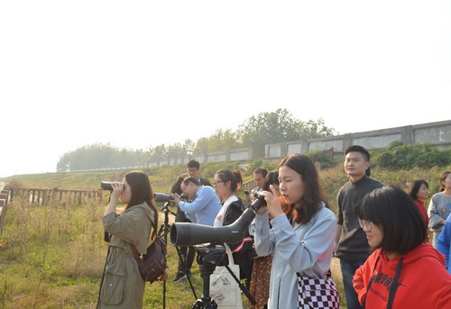最后,大家在洞庭湖边观看欣赏候鸟,大部分研究生都是第一次有机会欣赏候鸟,激动与好奇难以言表。