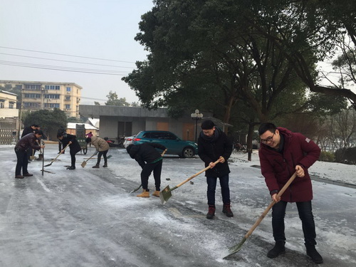 连日的冰冻雨雪天气,中国科学院亚热带农业生态所园区一片银装素裹,但道路也出现严重结冰,给所内职工和学生的出行带来严重不便。1月29日上午,为彻底消除大家的出行安全隐患,保障道路畅通,在前几天零星铲雪的基础上,副所长王新洪带领管理、后勤人员及研究生开展了一次大规模的铲雪除冰行动。