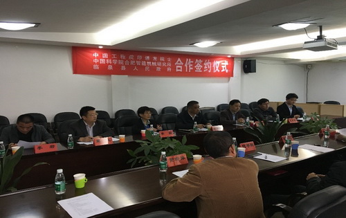 吴金水首先致辞欢迎客人一行到所考察交流,并介绍了研究所基本情况。孔祥峰介绍了畜禽养殖污染控制与资源化技术国家工程实验室的建设方案和工作进展汇报。梁永勤介绍了临泉县的概况并重点阐述了畜禽养殖及粪污处理方面的情况及面临问题。李淼介绍了畜禽养殖污染控制与资源化技术国家工程实验室安徽分中心的建设情况。三方就潜在的合作领域进行了深入的讨论,并达成了合作意向,同时,三方签订了院士工作站合作协议。