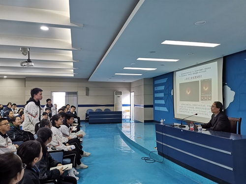 苏刚的科普报告从人类对宇宙的认识和探索开始,逐步介绍物质的基本单元、状态和基本物理学规律。在集中介绍20世纪两大科学发现量子力学和相对论的基本内涵及应用的基础上,以演生现象和对称性破缺为例,展示物理学的神奇之处;以几项诺贝尔奖的科学成就为例,说明物理学的魅力不仅限于科学,而且推动了技术和社会的进步,极大地造福于人类。同时苏刚就2019年4月10日人类历史上首张发布的黑洞照片进行了详细介绍,如何给黑洞拍照以及照片的“冲洗”,极大提高了学生们对物理学习的积极性。报告中还穿插了我国在天文和空间等领域取得的新成果,并鼓励同学们报考国科大,立志成为未来中国的科技领军人才。最后,他以老子的名言“天下难事,必作于易;天下大事,必作于细。是以圣人终不为大,故能成其大”来勉励广大学生立志科学报国,追求科学梦想。报告结束后,苏刚耐心地解答了同学们的科学问题以及国科大招生方式和分数线等招生相关问题。
