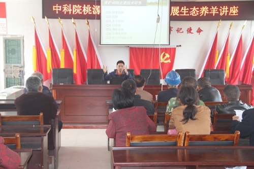 在桃源县理工港镇杨公桥村,桃源站组织专家讲授了“桃源黄麻羊的养殖与疾病防控技术”和 “牧草栽培与青贮技术”。专家们现场讲解有关山羊常见疾病的治疗以及牧草品种的选择和适合于当地的青贮方式,并且回答了养羊大户关心的技术问题。广大养殖户对技术讲座表现了浓厚的兴趣,希望政府能够定时邀请专家解决技术问题,帮助农民通过科学养羊早日脱贫致富。