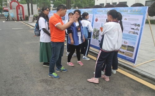 志愿者给中学生讲解农村环境保护(陈焱国摄)
