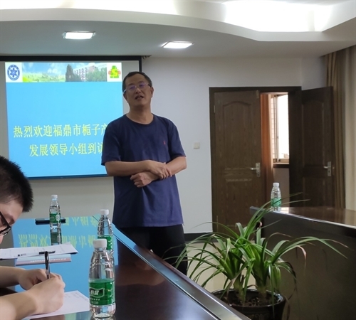 印遇龙首先向客人介绍了课题组工作背景、基本情况、近年主要研究成果以及社会影响等方面的情况。张世旭介绍了福鼎市栀子产业的发展历史、现状以及遇到的瓶颈问题。会上,双方就栀子及其副产物作为饲料原料和饲料添加剂在畜牧业中的研发和应用进行了交流和讨论。双方一致同意在未来切实加强交流,建立战略合作关系。