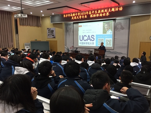国科大湖南招生组由国科大本部和亚热带农业生态研究所10多位老师组成,由国科大副校长苏刚和亚热带生态所原副所长王新洪担任共同组长。在组长的精心组织下,自2018年12月开始,招生组老师分批对湖南省内的21所目标中学开展科普报告或励志报告活动,先后有马石庄、杨国强、汪景琇、李永舫、苏刚、席南华等院士、专家走进中学校园,通过报告会形式与高中生交流,既使中学生知晓科学研究的奥妙,又使他们了解国科大的治校治学理念和培养特色,同时还激发了中学生崇尚科学研究的热情。招生组老师也根据各自联系地市的特色,深入各地市进行了22场招生宣讲。为了更好地与考生家长沟通交流,今年湖南招生组在长沙首次举行了本科招生家长咨询会,并建立家长沟通微信群,通过咨询会和微信群,近距离与家长们沟通交流,耐心解答学校情况、培养模式、专业设置、招生政策和近年来在湘录取情况等内容,得到家长们的高度认可。