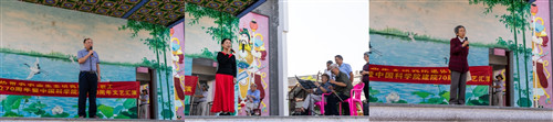 在渔窑小镇的戏曲舞台上,参加活动的老同志踊跃登台用歌声、诗朗诵和舞蹈等多种艺术形式庆祝中华人民共和国成立70周年和中国科学院建院70周年,讴歌对伟大祖国的热爱与祝福。老同志们精神焕发、载歌载舞先后表演了二重唱《祖国万岁》《红梅赞》《我们是工农子弟兵》,京剧《洪洋洞》《失街亭》《梨花颂》,诗朗诵毛主席诗词《沁园春雪》,太极扇,舞蹈《共和国之恋》和《我和我的祖国》等节目唱出了对伟大祖国、对中国共产党的深情厚爱,表达了老同志们“不忘初心、牢记使命”的坚定信念和昂扬向上的精神风貌。