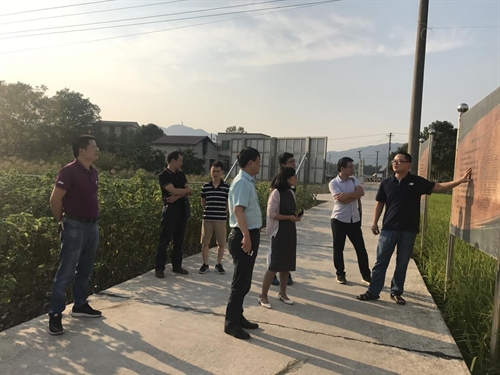朱奇宏研究员陪同客人参观了站内开展的土壤-植物系统重金属迁移转运规律、农艺综合调控、高效原位钝化、非食用作物替代种植、重金属低积累水稻品种选育、灌溉水净化等田间试验,并向客人简要介绍了各项试验的研究目标、重要进展和下一步研究思路。