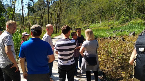 10月27日至11月2日,在国家自然科学基金重点基金项目“人为干扰变化下喀斯特生态系统结构与功能响应机理”及国家重点研发计划峰丛洼地石漠化综合治理项目支持下,中科院环江喀斯特生态系统观测研究站组织开展喀斯特生态修复与人地关系演变科学考察。应中科院亚热带农业生态研究所王克林研究员及所青年创新促进会小组邀请,丹麦哥本哈根大学地理系Rasmus Fensholt教授、Jytte Larsen副教授、Martin Jepsen副教授、Alexander Prishchepov副教授、Martin Brandt助理教授,美国俄克拉荷马大学Xiangming Xiao教授及中国地质大学、南宁师范大学相关科研人员等18人参加考察。