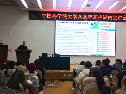 12月28日,中国科学院大学(简称“国科大”)在长沙举行2020年本科招生家长咨询会。国科大湖南招生组共同组长王新洪主持,中国科学院亚热带农业生态所副所长陈洪松、招生组部分组员和全省300多名家长前来参加。