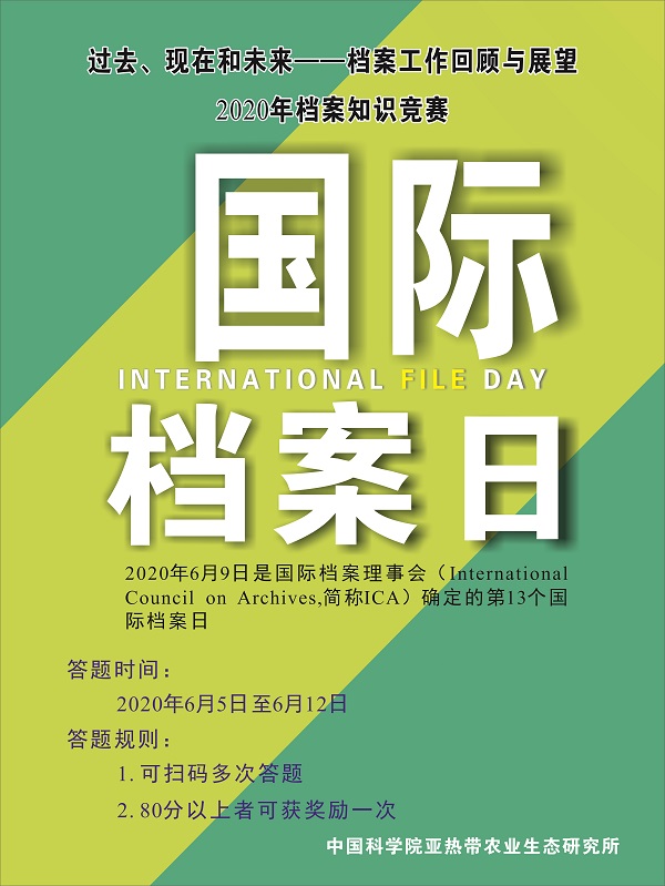 6月9日是“国际档案日”,中国科学院亚热带农业生态所以“过去、现在和未来——档案工作回顾与展望”为主题开展了线上档案知识竞赛活动。