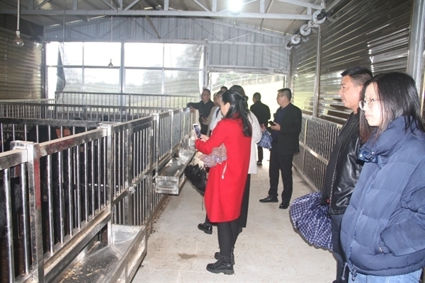 魏文学研究员向来宾介绍桃源站农牧结合模式建设(陈焱国 摄影)