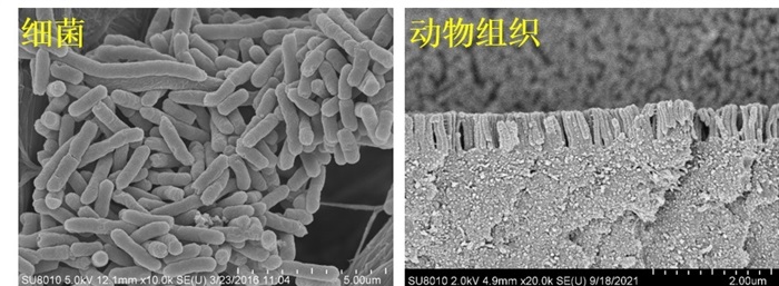 中心扫描电子显微镜为高分辨冷场场发射扫描电子显微镜,配有能谱仪、离子溅射仪、冷冻干燥仪等,能够进行生物、土壤、材料等多种样品的表面超微结构观察,能够进行样品微区元素定量/定性分析、样品表面元素分布分析等。