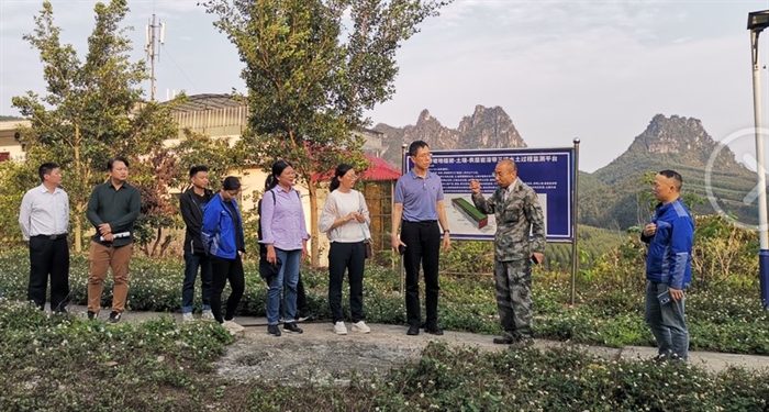调研组一行参观了环江站实验室、专家公寓和站区喀斯特坡地径流场、植被-土壤-表层岩溶带三维水土过程监测设施试验平台。同时就台站建设、运行中出现的实际问题进行了深入交流。