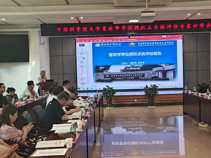 首先,印遇龙代表研究所热烈欢迎各位专家的到来,对大家关注和支持国科大畜牧学一级学科建设和发展表示感谢。石东乔详细介绍了国科大现代农业科学学院的基本情况,重点介绍了畜牧学学科的课程设置、学科建设等情况。谭支良代表国科大畜牧学一级学科学位授权点作自评估报告。他从培养目标、学位标准、培养方向、师资队伍、科学研究、教学科研支撑、奖助体系、人才培养、论文抽评以及科研服务等方面逐一向专家组介绍了学位授权点的基本情况。评估专家们认真听取了自评估汇报,细致审阅了评估材料,并针对畜牧学学位点的招生规模、课程体系、师资队伍等方面进行了提问和质询,对畜牧学学位点建设提出了许多中肯的建议和意见,并集体讨论形成了评议结果。评估专家组对畜牧学学科建设及人才培养给予充分的肯定,一致认为国科大畜牧学一级学科硕士学位授予点符合教育部要求,一致通过一级学科学位授权点的合格评估。