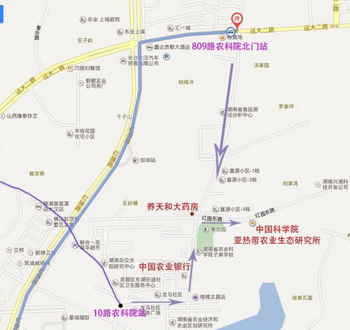 乘坐高铁抵达长沙者:从长沙南站(高铁站)东广场乘坐星沙111路/X111路到农科院下车;